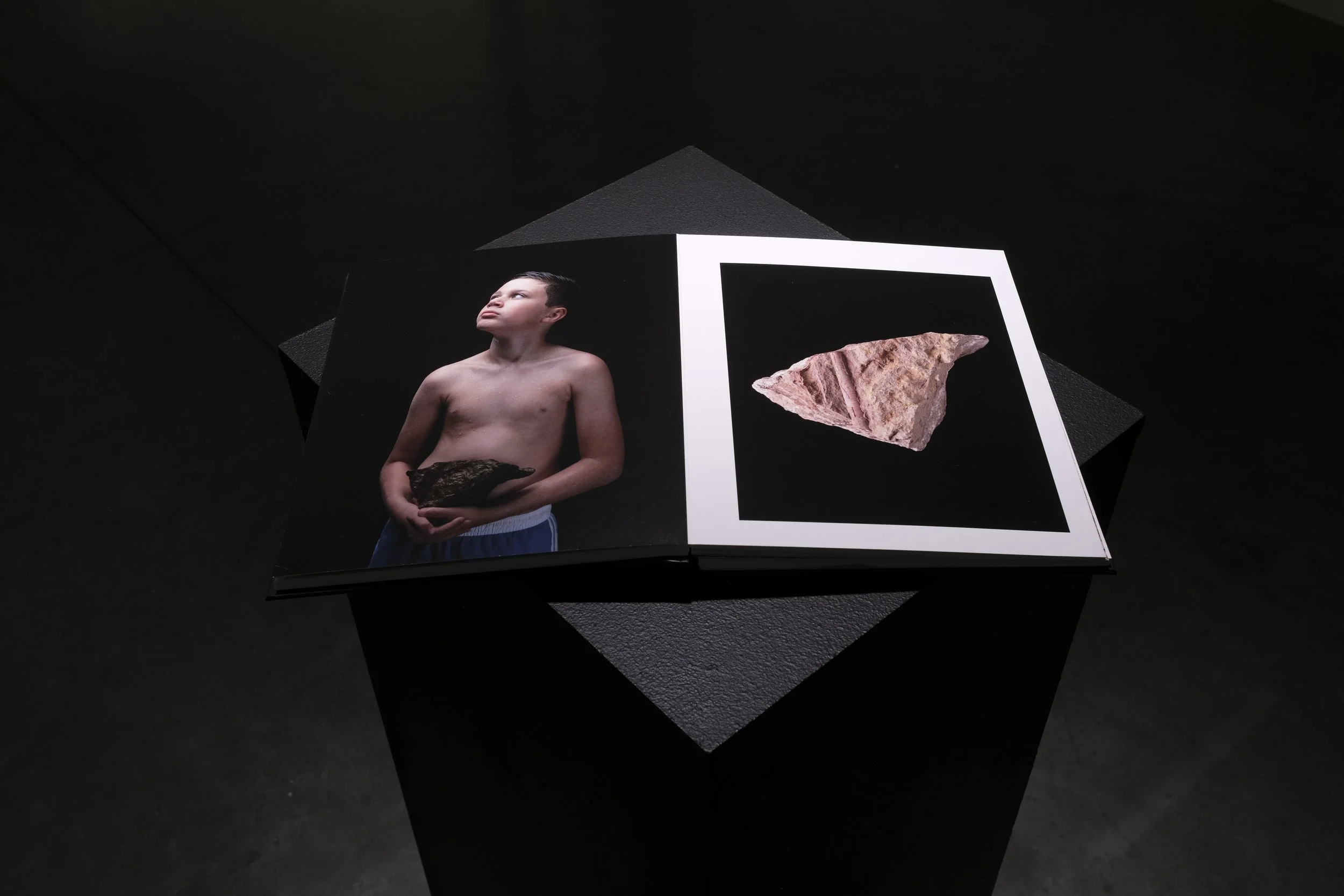 The photo book aimed to enhance the indexing and sense of repetition as well as reflect up the connection between generations. In a staged and documented act of play, the work explores materiality and humanity's innate need to leave a mark on the world. At the same time, the contrast between my children and the stones, which are millions of years old, is intended to amplify the passing of time. By involving my children in the process, we have together created shared memories linked to the very memories and places that my work seeks to investigate.
