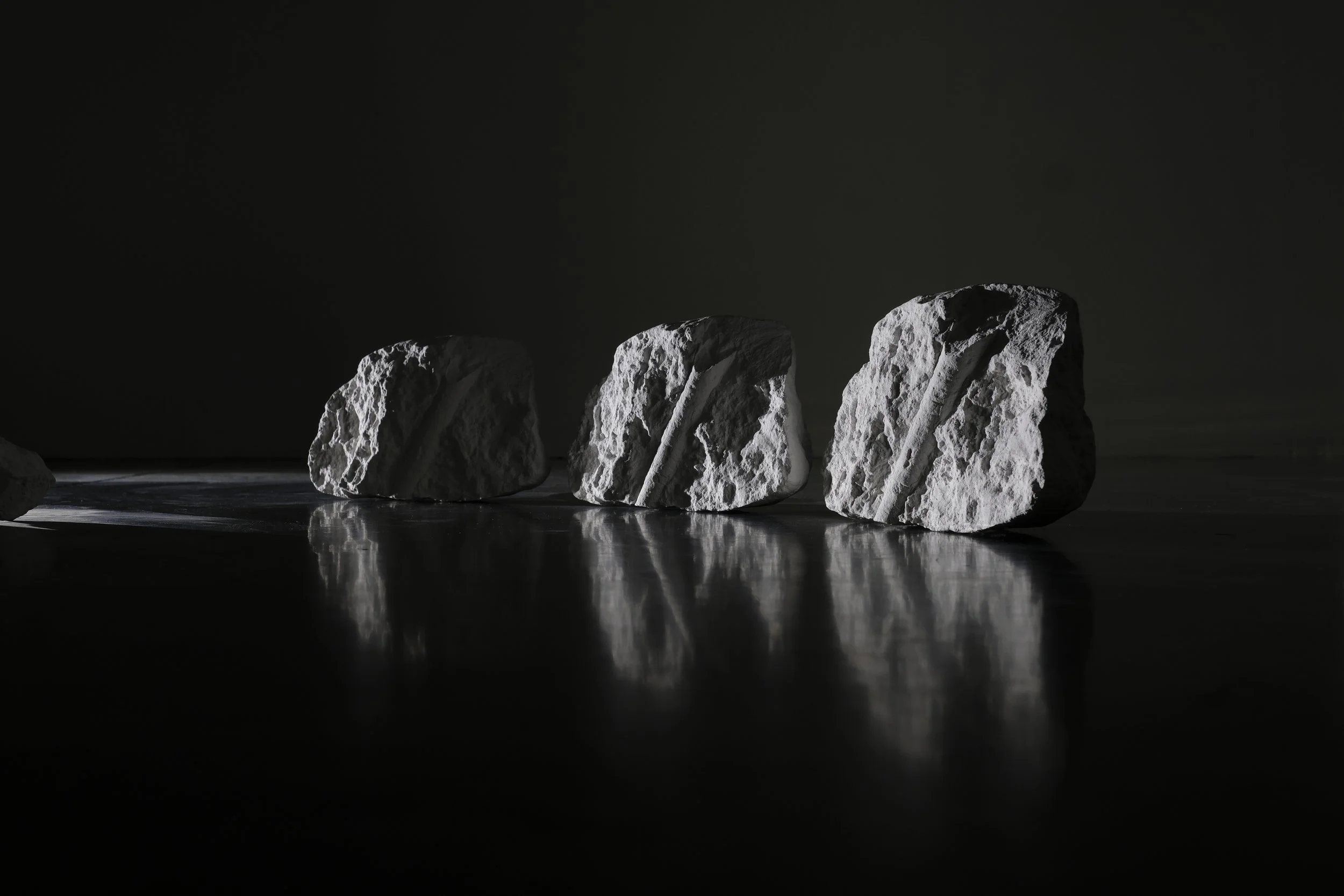 Throughout the project, repetition and indexing run as a unifying thread. Beyond what I aim to convey to the viewer, the process itself has held personal significance, deeply intertwined with the themes I am exploring. Casting nearly 200 stones has complemented my childhood memories of fossil collecting with the physical muscle memory of mixing plaster and handling molds.